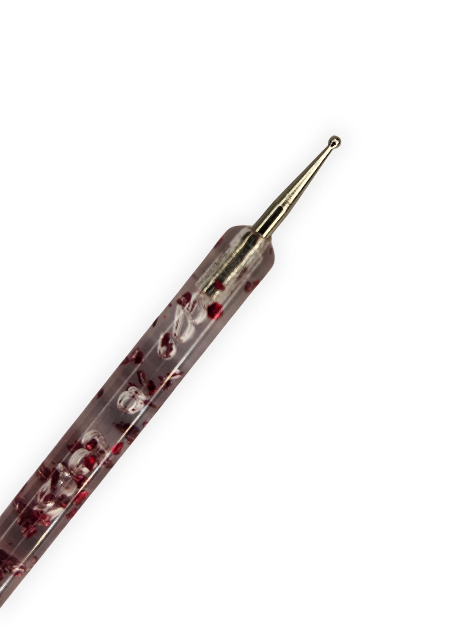 Description : Chic et audacieux, ce dotting tool habillé de rouge intense façon éclats de rubis apportera du caractère à votre collection. Sa transparence parsemée de paillettes donne un effet bijou irrésistible, tout en garantissant une prise en main confortable.